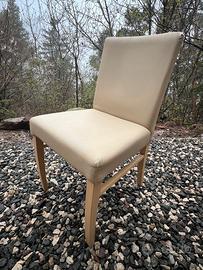 6 sedie belle e buone, ma hanno bisogno di una copertura perché l'ecopelle è un po' consumata negli angoli. Altezza 86 cm, larghezza 48 cm, altezza della seduta 47 cm