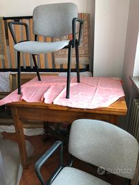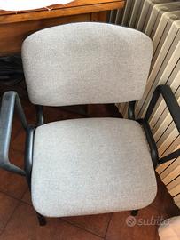 Sedie con braccioli . schienale e seduta imbottiti. Misure : seduta profonda cm 46 , larga cm 40 Altezza ai braccioli cm 64, altezza totale cm 81. Vendo a 20€ l una. Oppure 35€ la coppia