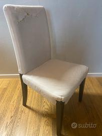 Sedie Bergmund Ikea NON foderate, solo base. Una in buone condizioni, una un po’ rovinata ma con fodera gli strappi non sono visibili e non disturbano la seduta.