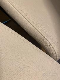 Sedie in ecopelle. Struttura solida e seduta comoda con cuscino in perfetto stato. La pelle è screpolata per l'usura, ma si possono rivestire con un altro tessuto o con delle coperture.