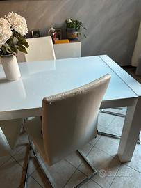 Vendo 6 sedie da tavola, imbottite in eco pelle bianca. struttura in metallo, comode e resistenti. Schienale alto, la struttura ha un leggero flex che le rende confortevoli durante la seduta.