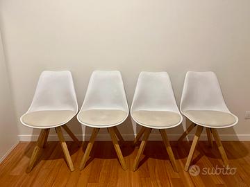 4 sedie bianche con seduta in ecopelle, struttura in PVC e gambe in legno. Marca JYSK Vendo per cambio arredo Solo consegna a mano a Milano, zona sud