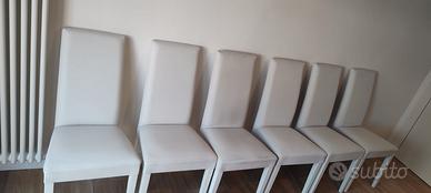 Vendo 6 sedie bianche in ecopelle per inutilizzo, 200 euro tutto. 5 sedie in ottime condizioni, tranne una (vedi ultima foto) TAG RICERCA: Ikea, mobile, soggiorno, cucina, tavolo, divano