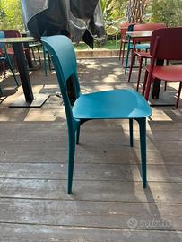 set di sedie blu da 6. sedie in plastica/polipropilene, stile moderno minimal. tipologia bar/ristorante outdoor (impiliabili)