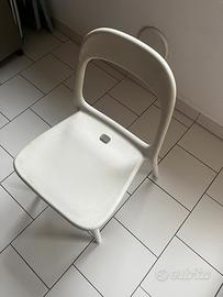 Vendo 4 sedie bianche in plastica dura. Le ho usate per il tavolo in cucina. Non presentano nessun danno o difetto ma solo qualche macchia facilmente rimovibile con una pulizia più approfondita. Non effettuo spedizione ma solo ritiro a mano. Le vendo a 10 euro l’una oppure 30 tutte e quattro.