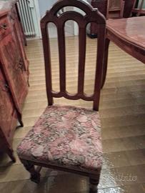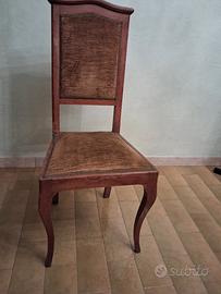 sedie in stile Chippendaleo di epocaLuigi Filippo, risalente alla fine dell'Ottocento o alla prima meta 900. Presenta uno schienale "a giorno" con listelli inlegno massello, spesso noce / mogano. La seduta è imbottita e rivestita in ecopelle di colore verde scuro. Altre stoffa originale in discrete condizioni.Le gambe tornite, conferendo alla sedia un aspetto elegante prezzo 40 euro sedia.