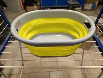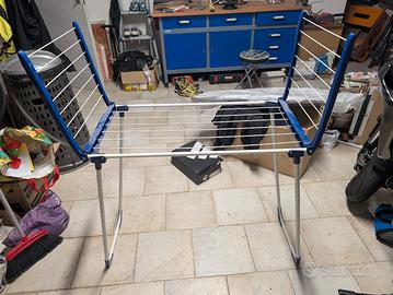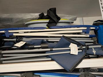sedie brunner regista ottimo stato, tavolo camper pieghevole discreto stato, stendino buono stato, bandiera richiudibile. borsa da bagno.