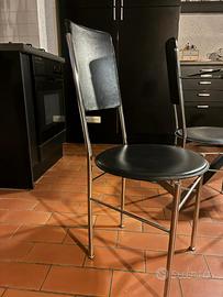 Lotto di 4 sedie vintage Calligaris, struttura in acciaio cromato e seduta in cuoio nero. Design elegante e intramontabile. Ideali per sala da pranzo, salotto o studio. Altezza 90 cm; Seduta 41x41 cm