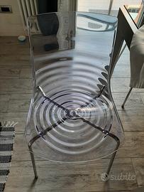 Sedia modello L'eau firmata Calligaris Connubia originali.Struttura in acciaio cromato e sedile in policarbonato trasparente con il tipico l'effetto della goccia d'acqua. 2 pezzi a 55 euro cadauna. Totale 110 euro, non vendibili singolarmente. Qualche segno di normale usura, ma in ottime condizioni. Ritiro a carico dell'acquirente, non spedisco.