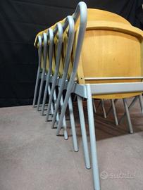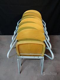 Sei sedie Calligaris impilabili legno e ferro vintage. Misure della pila : 113 x 58 x h.83 cm