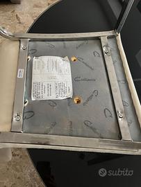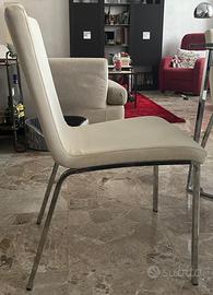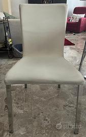 Vendo 4 sedie Calligaris originali, modello 346.65, made in Italy, con struttura in metallo cromato e seduta / schienale imbottiti e rivestiti in tessuto color panna.