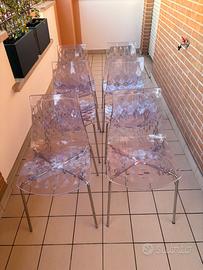 Vendo 6 sedie, in buono stato, trasparenti con gambe in acciaio