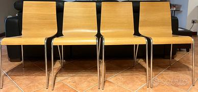 4 sedie Calligaris in acciaio cromato e legno curvato, usate come nuove a 160 tutte