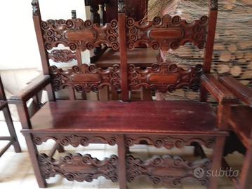 Sedie, cappelliera, cassapanca e scrivania antiche e di pregio.