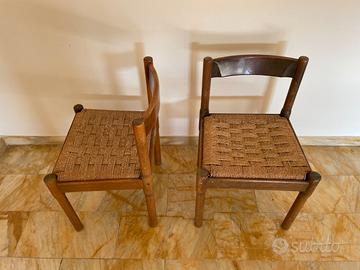 Due sedie Cassina, con seduta in paglia intrecciata, modello Carimate. Disegnate dal noto architetto Vico Magistretti.