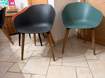 Vendo 6 sedie moderne in perfette condizioni, stile design nordico con gambe in legno. Colori: 2 nere, 2 arancioni, 2 verdi. Nessun difetto, pari al nuovo. Ideali per cucina, sala da pranzo o arredamento moderno. Prezzo: 390€ trattabili.