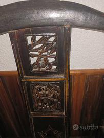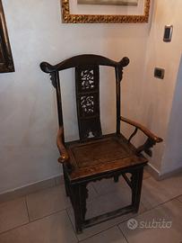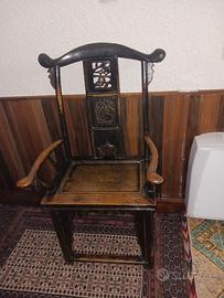 Coppia sedie cinesi con intarsi sulla spalliera.Bellissime per arredo o capotavola. € 1000 la coppia singolarmente 600 euri.