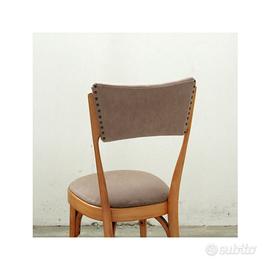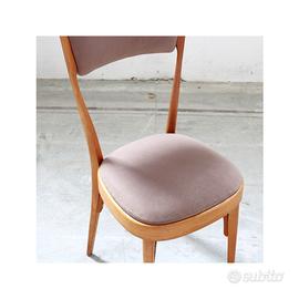 Otto sedie vintage anni 1950-59, realizzata in legno di faggio con seduta e schienale rivestiti in velluto in delicata tonalità neutra. Dalle linee morbide e armoniose, è un pezzo senza tempo capace di portare calore, stile e raffinatezza in ogni ambiente.