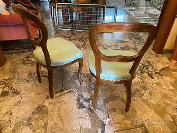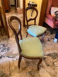 Vendo n.2 sedie classiche in legno rivestite in tessuto verde salvia. Sedie in legno per cucina, sala da pranzo o soggiorno imbottite e tappezzate da artigiani tappezzieri.