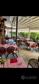 Vendo - anche separatamente Totale: 12 tavoli quadrati pieghevoli 76x76xh71 2 tavoli rettangolari pieghevoli 120x76xh71 40 sedie 40 cuscini rossi come nuovi