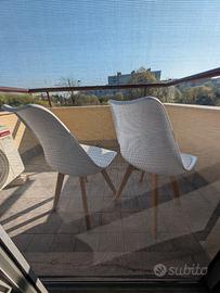 Quattro sedie con gambe in legno e struttura in polipropilene e cuscino in ecopelle molto comode e belle da vedere. Servono alcuni piccoli aggiustamenti in alcune (rafforzare viti o sistemare la gamba) ma sono perfettamente funzionali. Ritiro in mio domicilio Milano