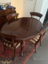4 sedie con tavolo mogano con 3 prolunghe