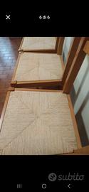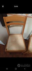 Vendo sedie per tavolo da cucina in legno e impagliate con alcuni segni di usura sulle zampe. Buone condizioni. Set da 6 sedie vendibili anche separatamente.