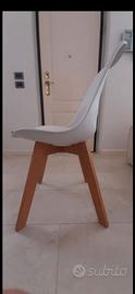 Vendo 4 sedie stile scandinavo base in legno schienale in polipropilene cuscino in ecopelle sedie in ottimo stato, usate pochissimo