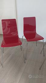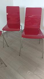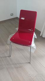 Sedie rosso lampone impilabili in policarbonato e acciaio cromato adatte a cucina o sala da pranzo. Made in Italy. Marchio come da foto. Vedita solo in blocco. Scambio a mano.