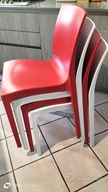 vendo 4 sedie da cucina in plastica , credo siano in policarbonato, colorate come da foto ,sono impilabili sono usate ma non manifestano alcuna imperfezione.