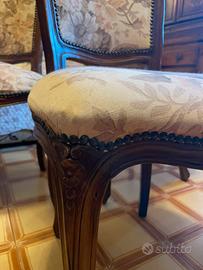 Vendo 6 sedie d’epoca. Ovviamebte usate come si vede dalla foto, ma in ottimo stato, tranne una che ha una molla rotta.