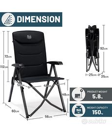Sedie da Campeggio 150KG Sedie da Giardino Pieghevoli Portatili Schienale Alto Sedia da Esterno Regolabile in 4 Posizioni per Campeggio Spiaggia Sgabello Picnic Caravan