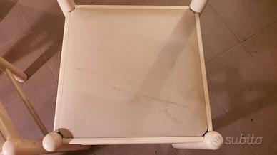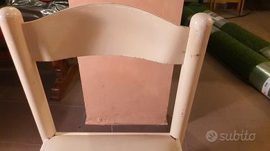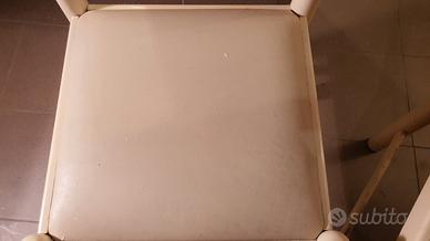 Vendo due sedie da cucina bianche in legno massello. Presentano graffi da usura ma la struttura è solida e la seduta intatta.