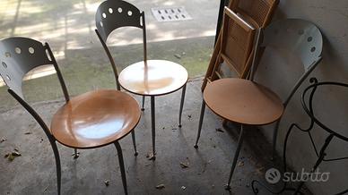 3 sedie da cucina acciaio e legno chiaro, praticamente mai usate