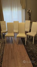 Sei sedie in legno rivestimento ecopelle bianche