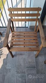 Coppia di sedie da esterno in legno massiccio, ideali per balcone, terrazzo o giardino. Le sedie sono di marca IKEA, prima versione del modello Applaro.