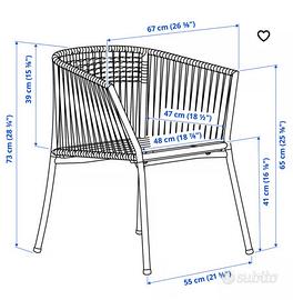 Vendo un set di 4 sedie da esterno in corda intrecciata, dal design moderno e molto comode.