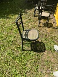 Sedie da esterno in buone condizioni, necessitano di una pulita. Sedute in plastica senza difetti e ancora resistenti. Montatura in ferro verniciato nero.