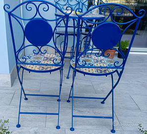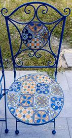VENDO 2 SEDIE IN FERRO BATTUTO BLU PIEGHEVOLI CON SEDUTA E SCHIENALE IN MAIOLICHE FATTE A MANO. 150€ - ARCO - TRENTO