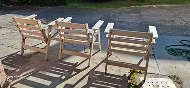 3 sedie in legno da giardino anni '70 con cuscini originali.