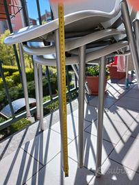 tre sedie con seduta in polipropilene e gambe in acciaio misure in foto piccoli segni di usura
