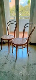 Due sedie Thonet No. 14 disegnata da Gebrüder Thonet nel 1876. Questa sedia fu prodotta da Jacob & Josef Kohn (J & J Kohn, padre Jacob e figlio Josef) intorno al 1900 il più grande concorrente di Thonet. La ditta lavorava con i designer della Wiener Werkstätte (tra gli altri Josef Hoffmann e Koloman Moser). Contrassegnato sotto il sedile con un'etichetta di carta: "Jacob & Josef Kohn, Wien". Visibile a Bergamo. Non spedisco a causa