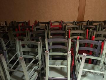 Vendo circa 80 sedie da ristorante , in buono stato, colori vari come da foto. Prezzo 10€ l’una Quantità minima 10 sedie.