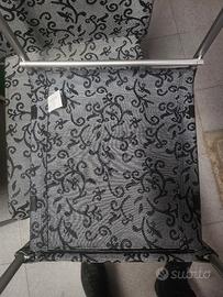 Rivestimento: tessuto con motivo floreale/arabesco nero su sfondo grigio chiaro.