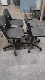 n.4 sedie da scrivania colore nero in plastica e rivestimento tessuto con ruote girevoli, stabili e confortevoli.