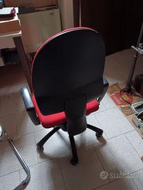 2 sedie da scrivania da ufficio in ottimo stato quella di colore rosso e regolabile in altezza con rotelle, mentre quella blu è fissa 20 euro cadauna vendo anche singolarmente.
