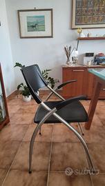 Vendo 8 sedie da soggiorno, 2 con Braccioli e 4 senza Braccioli di Calligaris. Segni di usura sulla parte in cuoio. Strutture in metallo in perfetto stato. Disponibili su Roma zona Tuscolana Per ulteriori foto contattatemi privatamente