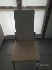 vendo 6 sedie bianche in ecopelle con gambe argento cromate in buone condizioni complete di cuscini.