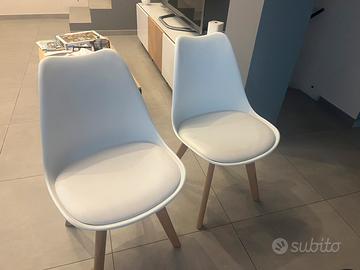 Vendesi 8 sedie bianche da tavolo. Le sedie si presentano in buone condizioni. Sono in pvc con le gambe in legno chiaro. La seduta è rinforzata quindi sono molto comode. Vendesi per cambio arredamento. Vendesi singolarmente a 20 euro. Se prese insieme, vendesi a 150 euro.