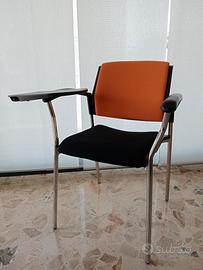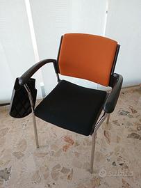 N. 10 sedie impilabili da ufficio, con braccioli e tavoletta (a destra), come nuove, marca Arteco. Seduta e schienale imbottiti di colore nero e arancione. Costo 35€ cadauna. Zona di ritiro Ca' Savio/Cavallino Treporti (Ve)